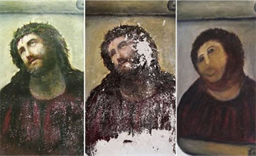 修復(fù)文物本是為了更好地保護(hù),但近來(lái)卻誕生了一個(gè)熱詞—"破壞性修復(fù)"。日前,遼寧省朝陽(yáng)市景區(qū)內(nèi)一處清代壁畫被修復(fù)得面目全非,還遭到網(wǎng)友調(diào)侃。近年來(lái)文物修復(fù)專業(yè)人才十分緊缺,但門外漢攪局的情況卻是屢見(jiàn)不鮮。這樣的例子其實(shí)在國(guó)外也并不鮮見(jiàn),比如西班牙80歲老太塞希莉婭·希梅內(nèi)斯偶然間發(fā)現(xiàn)了博爾哈鎮(zhèn)教堂內(nèi)有一幅馬丁內(nèi)斯所繪的《戴荊冠耶穌》。她非常喜歡這幅陳舊的壁畫,于是按照自己的意愿開(kāi)始了"修復(fù)工程",最終造就了"藝術(shù)史上最大的修復(fù)災(zāi)難"。[詳細(xì)]