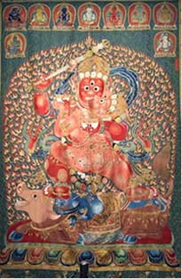 印度、尼泊爾唐卡有幾個重要鑒別特點不可不查:一幅唐卡的主體可能是由徒弟繪制,但象眼睛,指甲,手印,人物身上的裝飾與法器等最見功力的地方大都由師傅繪制,購買時必須關(guān)注這些細(xì)節(jié);有的唐卡繪制完畢后會在表面打一層蠟……[詳細(xì)]