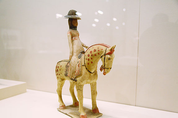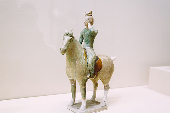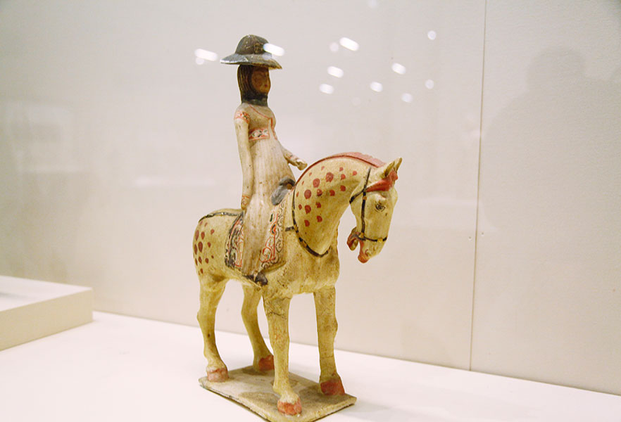 女俑因其優(yōu)美的形體與服飾給人以美的享受,尤其是漢唐時(shí)代,女俑作為一種文物符號(hào)深刻地表現(xiàn)了所處時(shí)代的精神風(fēng)貌。這些絲綢之路上的“女神”,曲眉豐肌,儂麗多態(tài),多著胡裝,是絲綢之路上文化交流、胡漢融合的體現(xiàn)。唐朝寬容開(kāi)放,婦女可以拋頭露面到市街游玩,還可以參加打球、射獵等活動(dòng)。女俑有的身著女裝,嫵媚婀娜;有的身著胡服或男裝,英姿颯爽,展現(xiàn)了唐代女子開(kāi)朗自信的精神風(fēng)貌。[詳細(xì)]