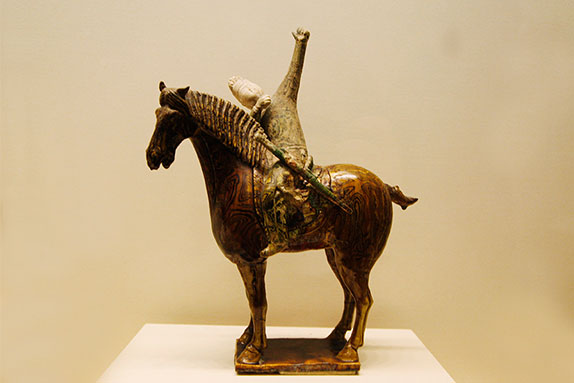 在唐三彩眾多的器物中,最為突出的是俑類。藝人們通過(guò)對(duì)社會(huì)現(xiàn)實(shí)生活中人物、動(dòng)物形象的認(rèn)真觀察,經(jīng)過(guò)提煉和加工,將不同人物、不同身份的形象,塑造得準(zhǔn)確生動(dòng)、生氣勃勃。[詳細(xì)]