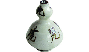 這只孟家井窯燒制的玉壺春瓶,釉色白中泛黃,上書“榆次縣孟家井燒來的胡壺白如有不□(此字無法辨認(rèn))”。此瓶是現(xiàn)存唯一標(biāo)明產(chǎn)地的孟家井窯產(chǎn)品。[詳細(xì)]